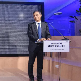 Rodolphe Saadé, Président Directeur Général du Groupe CMA CGM, Ary Chalus, Président de la Région GuadeloupeE, et Alexandre Rochatte, Préfet de la Région Guadeloupe, ont officiellement inauguré ZEBOX Caraïbes le vendredi 23 septembre 2022. ZEBOX Caraïbes est l'un des trois hubs internationaux de ZEBOX, incubateur, accélérateur et centre d'innovation international pour les startups technologiques et les grands groupes.